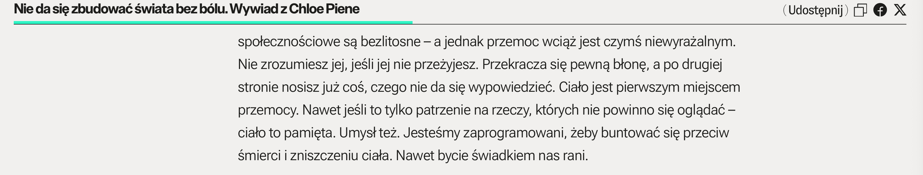 NIE DA SIĘ ZBUDOWAĆ ŚWIATA BEZ BÓLU. WYWIAD Z CHLOE PIENE